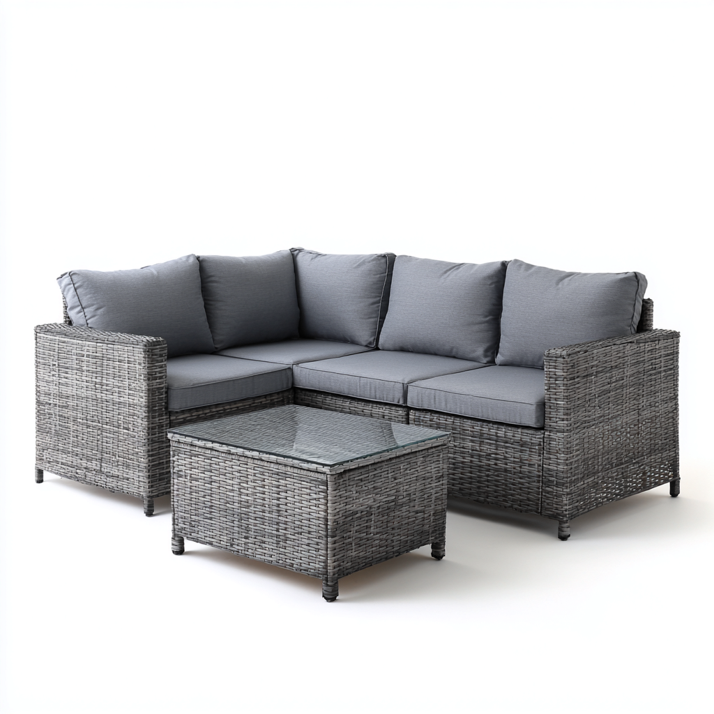 Sofá de exterior rinconero 3 piezas ratán sintético 190x190x72 cm - gris - diseño para jardín