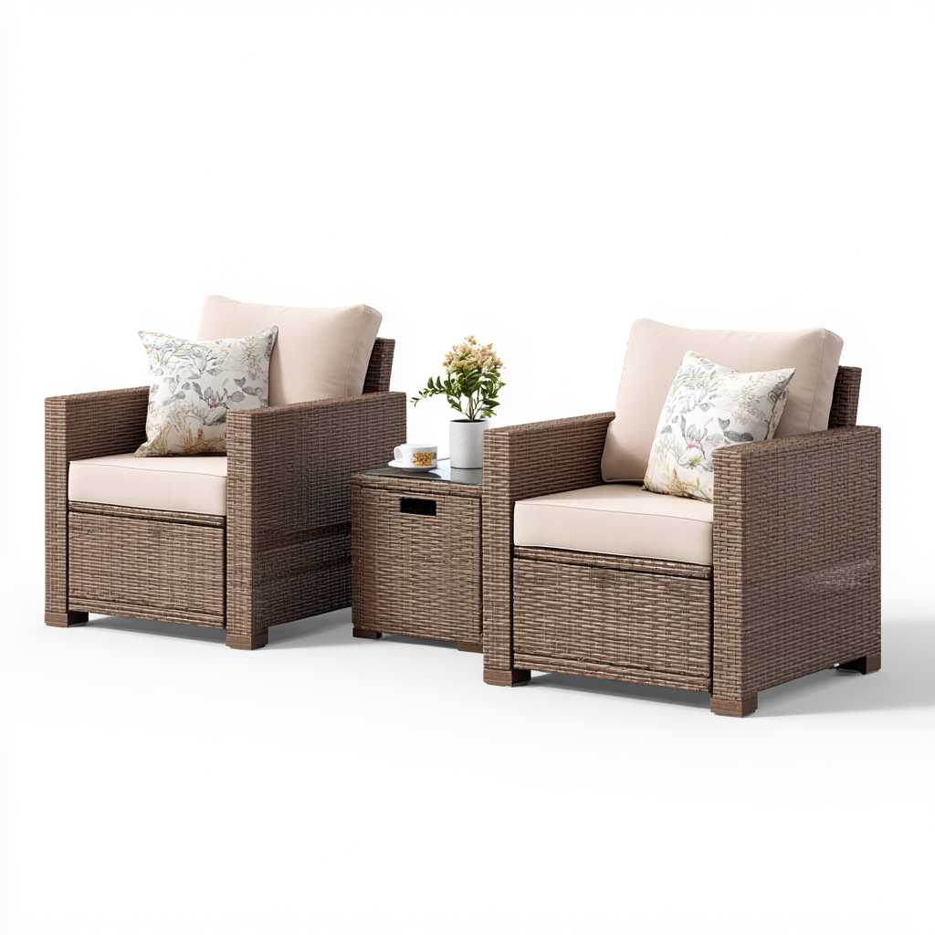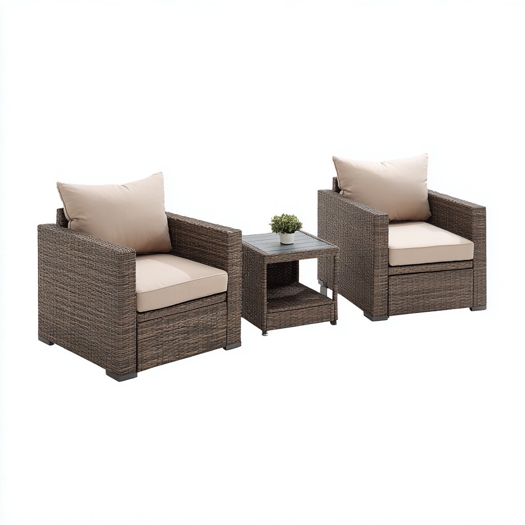 Sofá de exterior 3 piezas ratán sintético 100x55x45 cm - beige-marrón - diseño moderno apto para jardín
