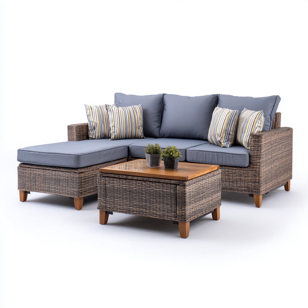 Sofá de exterior 3 piezas ratán sintético 100x55x45 cm - gris-marrón - diseño moderno apto para jardín